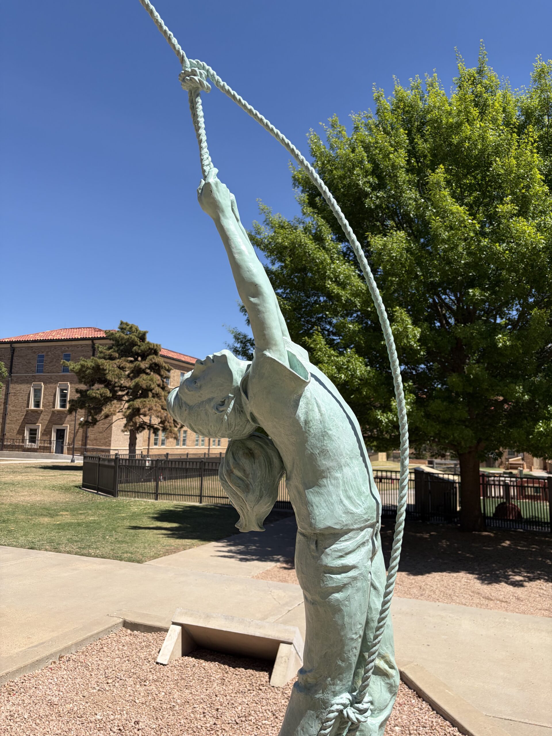 The subject of this piece, a young girl swinging on a rope, expresses the essence of a child’s carefree spirit through its sheer simplicity of movement. “As I watched the easy rhythm of my daughter, Jamie, swinging on a rope…in our backyard,” Sandifer remembers, “I realized a truth…the freedom of a youth. We adults lose those peaceful and simple moments in our hectic pace of life.”